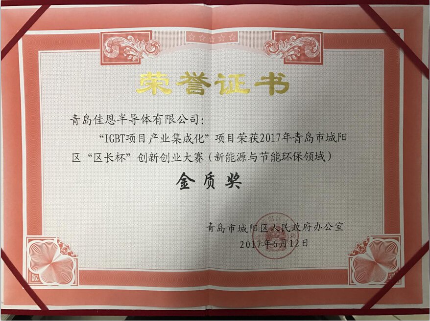 2017年城陽(yáng)區(qū)“區(qū)長(zhǎng)杯”創(chuàng)新創(chuàng)業(yè)大賽 由城陽(yáng)區(qū)人民政府主辦,城陽(yáng)區(qū)科學(xué)技術(shù)局承辦。宗旨是鼓勵(lì)科技發(fā)明創(chuàng)新,推動(dòng)“大眾創(chuàng)業(yè)、萬(wàn)眾創(chuàng)新”,充分調(diào)動(dòng)廣大科技人員的創(chuàng)造性,獎(jiǎng)勵(lì)其在創(chuàng)新創(chuàng)業(yè)活動(dòng)中作出的貢獻(xiàn)。青島佳恩也一直秉承“創(chuàng)新、優(yōu)質(zhì)、誠(chéng)信”的經(jīng)營(yíng)理念,不斷創(chuàng)新不斷提升。最終經(jīng)過(guò)兩個(gè)多月的準(zhǔn)備與初賽復(fù)賽的緊張角逐,于5月份圓滿結(jié)束,并非常榮幸的摘得此次大賽的一等獎(jiǎng)金質(zhì)獎(jiǎng)!開(kāi)啟了2017年新的征程。
