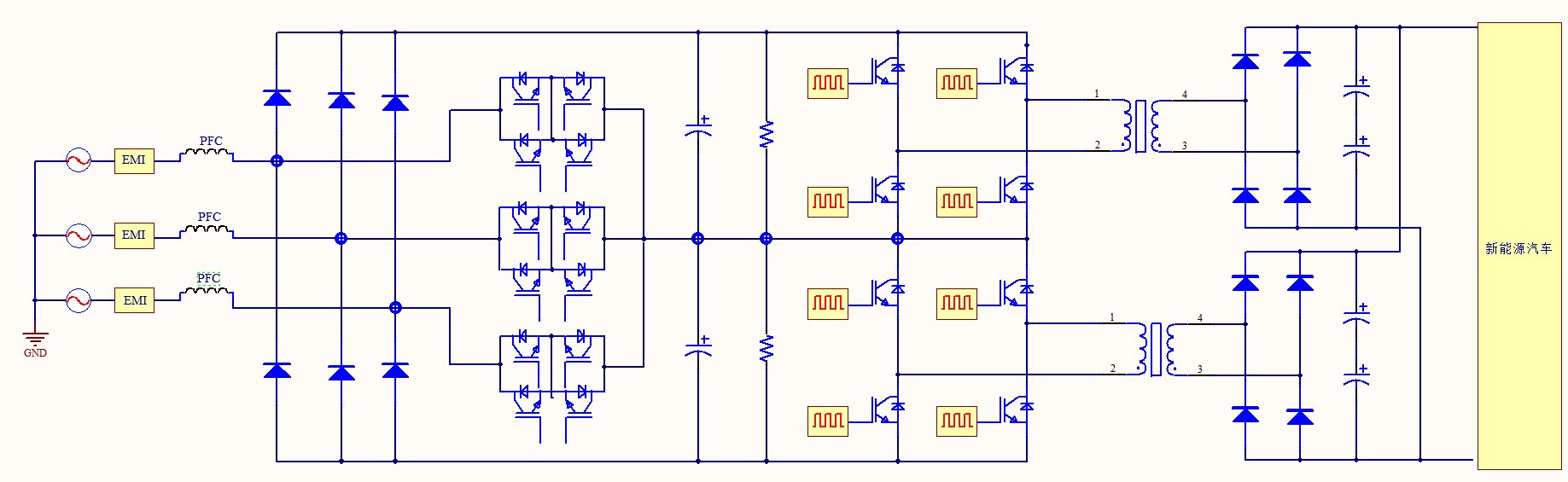 隨著新能源電動汽車的發(fā)展,人們對高效、安全的新能源充電樁的需求越來越大。交流充電樁充電速度相對較慢。相比交流充電樁,直流快充樁具有充電速度快、利用率高的特點(diǎn),新能源汽車車主的認(rèn)可度高,也是各大充電運(yùn)營商優(yōu)先選擇建設(shè)的類型,充電模塊是充電樁的核心。高功率直流充電樁設(shè)計會使用交流-直流和直流-直流轉(zhuǎn)換器將輸入的三相交流電轉(zhuǎn)換為電動汽車所需的直流電壓250V-750V,構(gòu)建15 kW 至 30 kW子功率模塊。